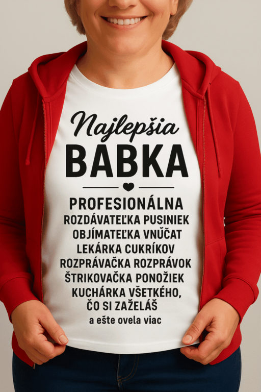 Tričko najlepšia babka – zoznam: Pre babku, ktorá má vždy v rukáve tajný recept na úsmev! Tento zoznam zábavy a lásky je ideálny darček na jej narodeniny alebo len tak, pre radosť. 🌟👵