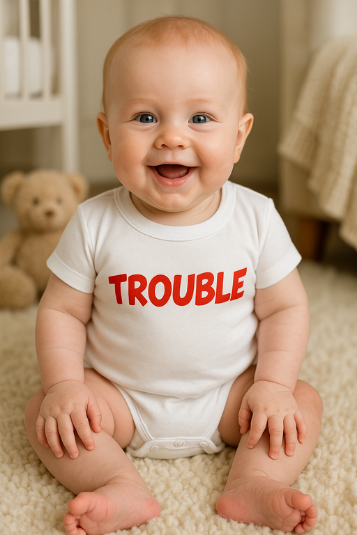 Detské body „Trouble“: Ideálne pre malých nezbedníkov, ktorí už od narodenia vedia, že život je najväčšia zábava! Oblečte svojho malého šibalčeka do štýlového vyjadrenia jeho osobnosti.