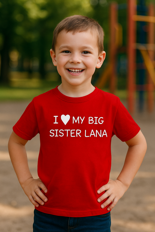 💖 Keď drobec povie nahlas: I ♥ MY BIG SISTER LANA – srdiečok a úsmevov sa nikdy neminie! Toto detské tričko je ako megafón na sesterskú lásku: malý kúsok, veľké posolstvo.