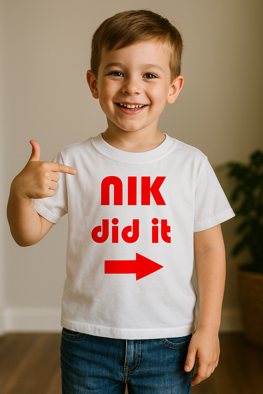 Malý génius v akcii! Naše vtipné detské tričko s nápisom „(meno podľa želania) did it“ je ako stvorené pre malých šibalov, ktorí radi robia neplechu. Ideálne na oslavy narodenín alebo len tak pre zábavu!