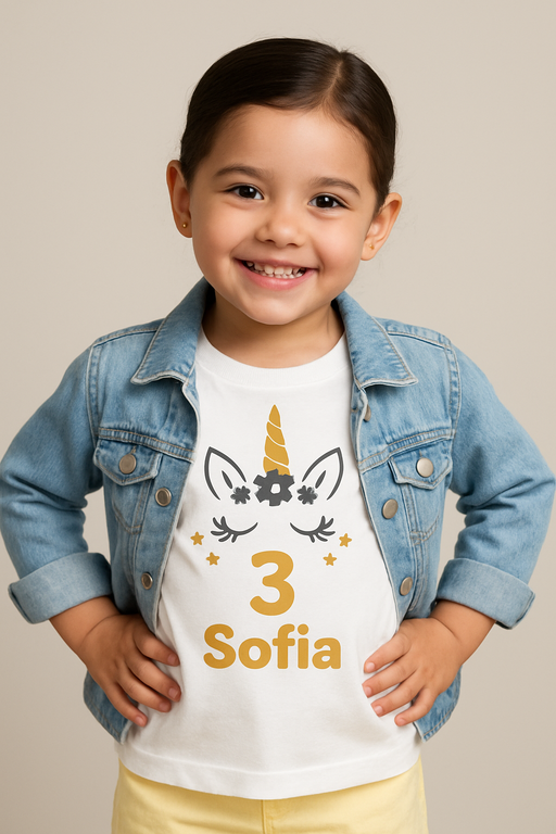 Vtipné detské tričko s jednorožcom a menom podľa želania je ideálny darček k narodeninám! Pridajte rok a urobte z neho nezabudnuteľný kúsok, ktorý rozžiari každý deň vášho malého čarodejníka. 🌈🦄