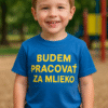 🍼 Keď sa platí mliekom, malí šéfovia berú nadčasy! Nápis WILL WORK FOR MILK na modrom detskom tričku sa postará o smiech kdekoľvek.
