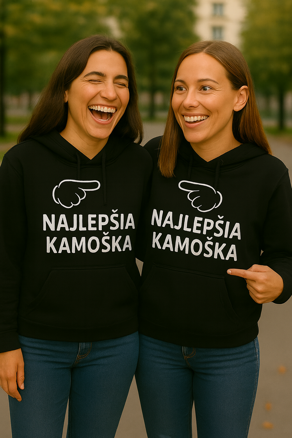 Tričko s kapucňou „Najlepšia priateľka“ – dokonalý outfit na dni plné smiechu a tajomstiev! Obleč si ho na kávu s kamoškou a ukáž svetu, kto je tvoj verný sprievodca v živote. 🌟👭