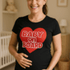 👶💥 BABY INSIDE – keď sa bruško zmení na oficiálny billboard! Toto čierne tehotenské tričko s krátkym rukávom a kruhom okolo nápisu prináša okamžité úsmevy a jasné posolstvá.