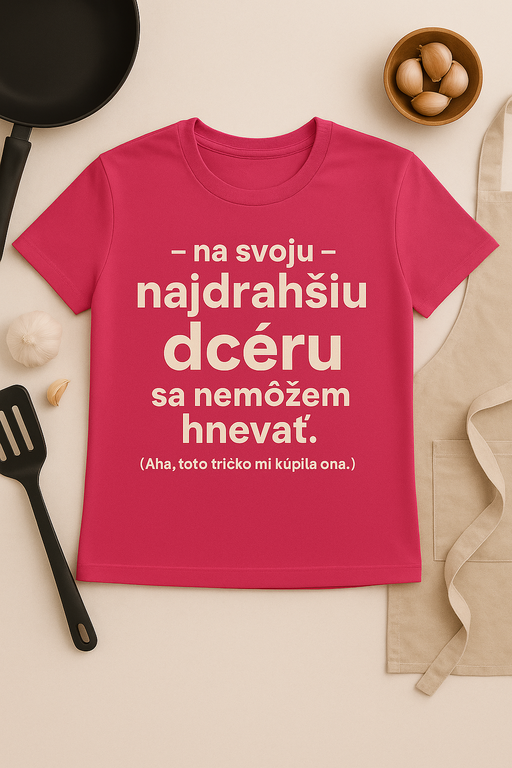 Tričko „Len na dcéru sa nemôžem hnevať“ je ideálny darček pre rodičov, ktorí vedia, že ich malá princezná má vždy nejaký es v rukáve! Perfektné na rodinné oslavy alebo bežné dni plné smiechu.