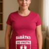 Ružové tričko s krátkymi rukávmi s nápisom BABY INSIDE, šípkou nadol a mini nožičkami je najkrajšia „tlačová správa“ tvojho bruška. Perfektné na prechádzky, kávičky a chvíle, keď chceš povedať veľa – bez jediného slova. Úsmev na tvári, tričko na brušku a komplimenty pršia!