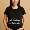 Štýlové čierne tehotenské tričko s bielym nápisom priamo na brušku je presne ten detail, ktorý rozosmeje okolie a zároveň krásne zvýrazní rastúce bruško. Skvelé na bežný deň, rodinné odhalenie aj na fotky, ku ktorým sa budete radi vracať.