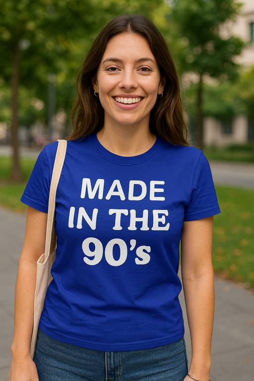Narodený/á v ére kaziet a tamagotchi? 😎 Kráľovsky modré tričko s nápisom MADE IN THE 90’s to povie za teba. Ideálne pre narodeninové legendy a všetkých nostalgikov! 🎉