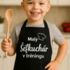 Táto čierna detská zástera s bielou potlačou „Little Chef in training“ a roztomilou kuchárskou čiapkou a metličkou jasne hlási: tréning sa začal. Menej neporiadku, viac smiechu — a možno už aj jedlá palacinka č. 3.