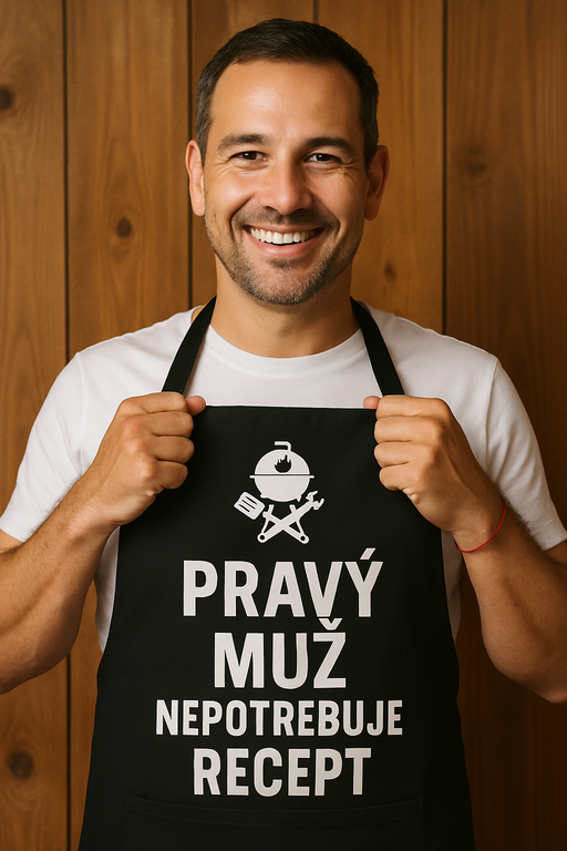 Zástera „Pravý muž“: Pre kuchynského kráľa, ktorý vie, že pravý muž nielenže ovláda gril, ale aj mixér! Perfektný darček pre každého chlapa, ktorý sa nebojí okoreniť život (a večeru).